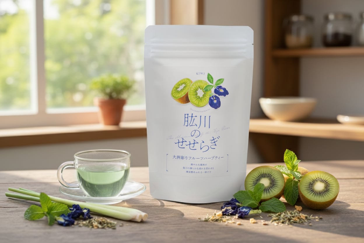 自社農園で丁寧に育てたハーブに、大洲産のドライキウイフルーツを組み合わせた「肱川のせせらぎ」。