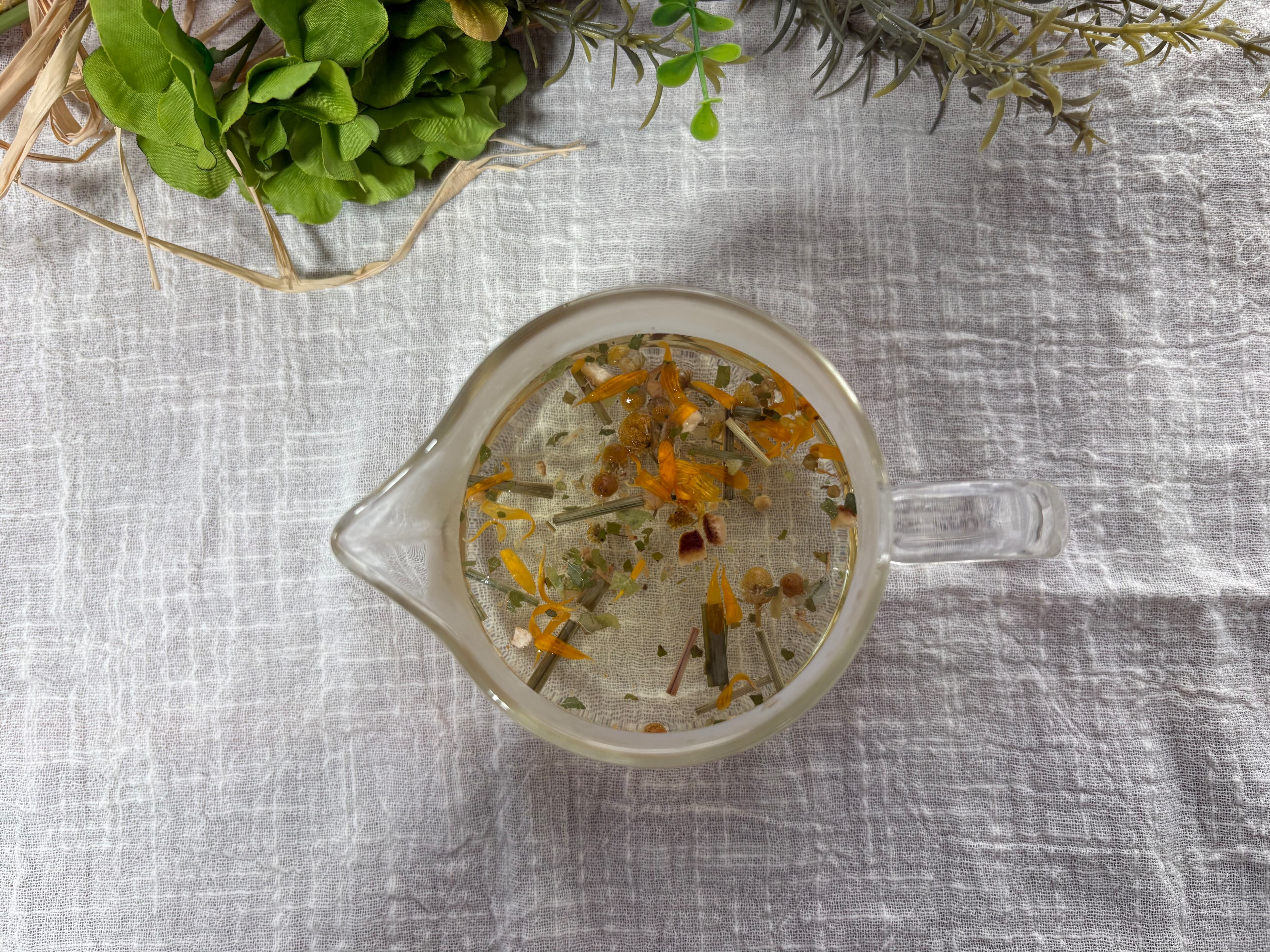 カモミールやレモングラス、マリーゴールドなど、心をふんわりと解きほぐし、気分を明るくしてくれるハーブをバランスよくブレンドしました。