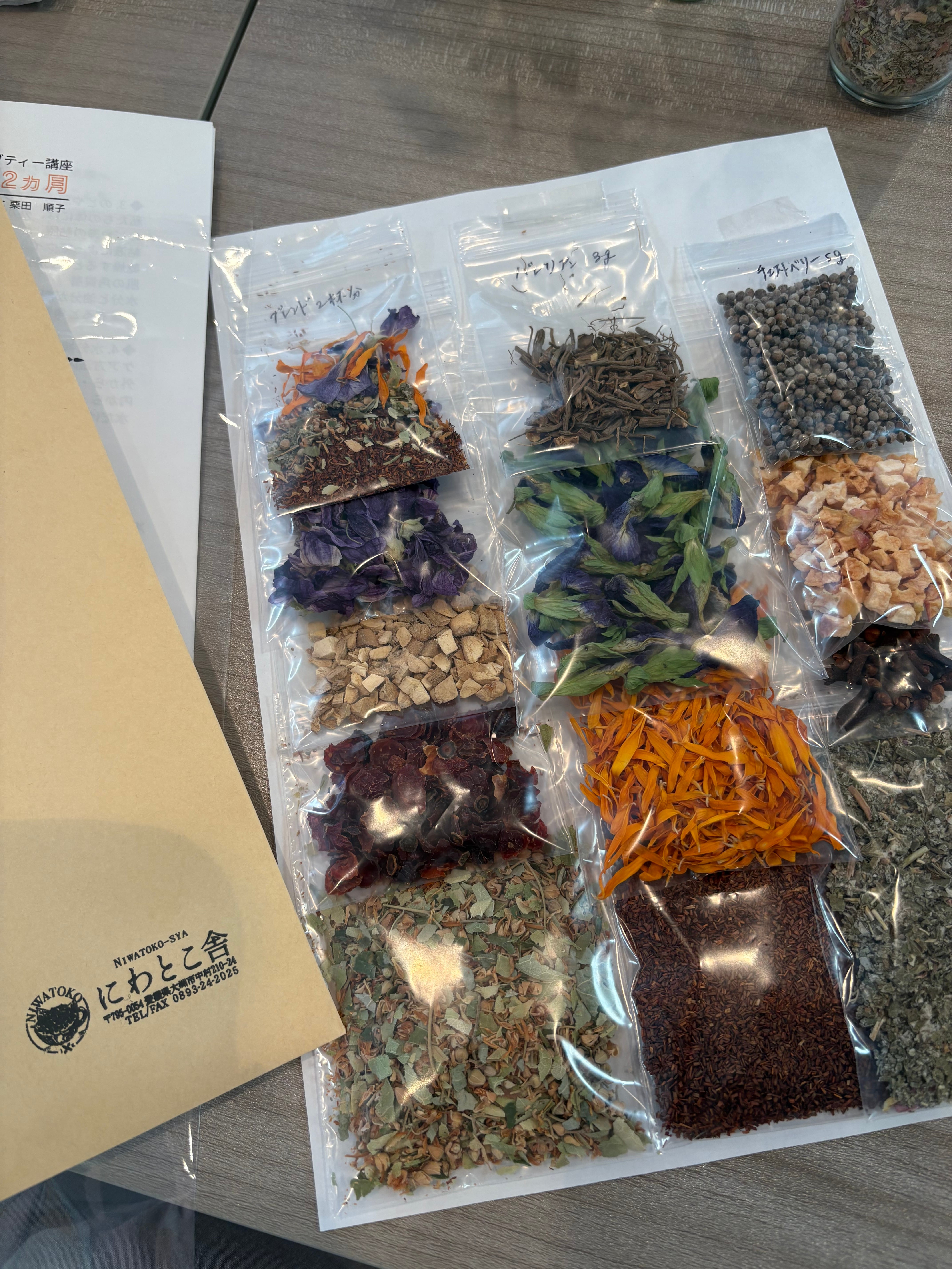 レッスン参加費用には、使用するハーブティーキット(7種類)が含まれます。